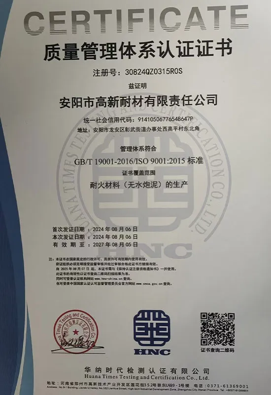 ООО Аньян Гаосинь Огнеупорные Материалы — это высококачественное и высокотехнологичное предприятие с полным ассортиментом и широким охватом в области производства и продажи огнеупорных материалов и ферросплавов. Компания была основана в мае 2005 года с уставным капиталом 10 миллионов юаней. Численность сотрудников компании составляет 500 человек (включая производственную базу), многие из которых имеют ученые степени, а 5 инженеров являются экспертами в области исследований и разработок.